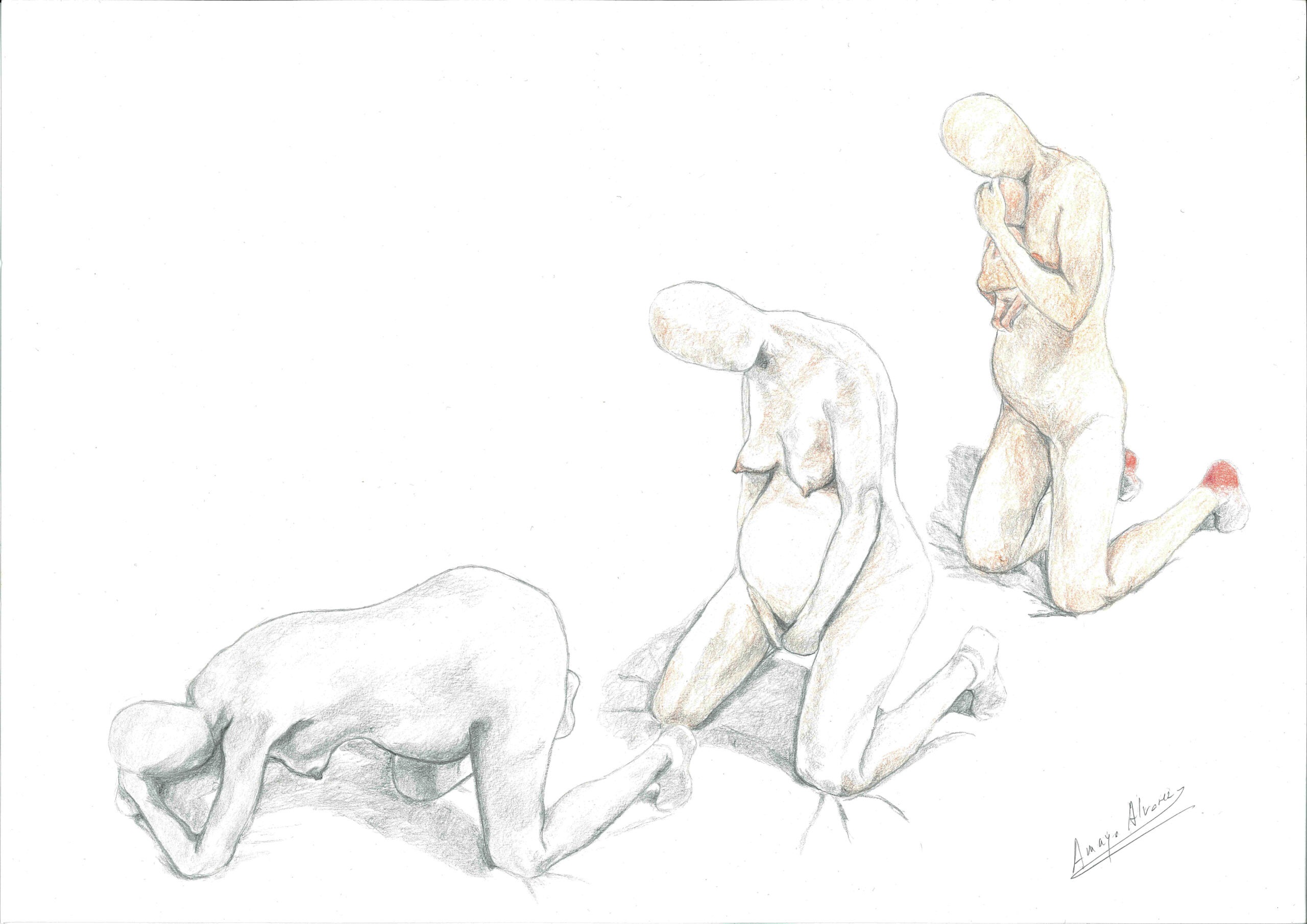 Esta es una de las ilustraciones que más me emocioné al hacer y que sé que continuará haciéndolo siempre. Las tres etapas del trabajo final del parto de mi tercera hija.